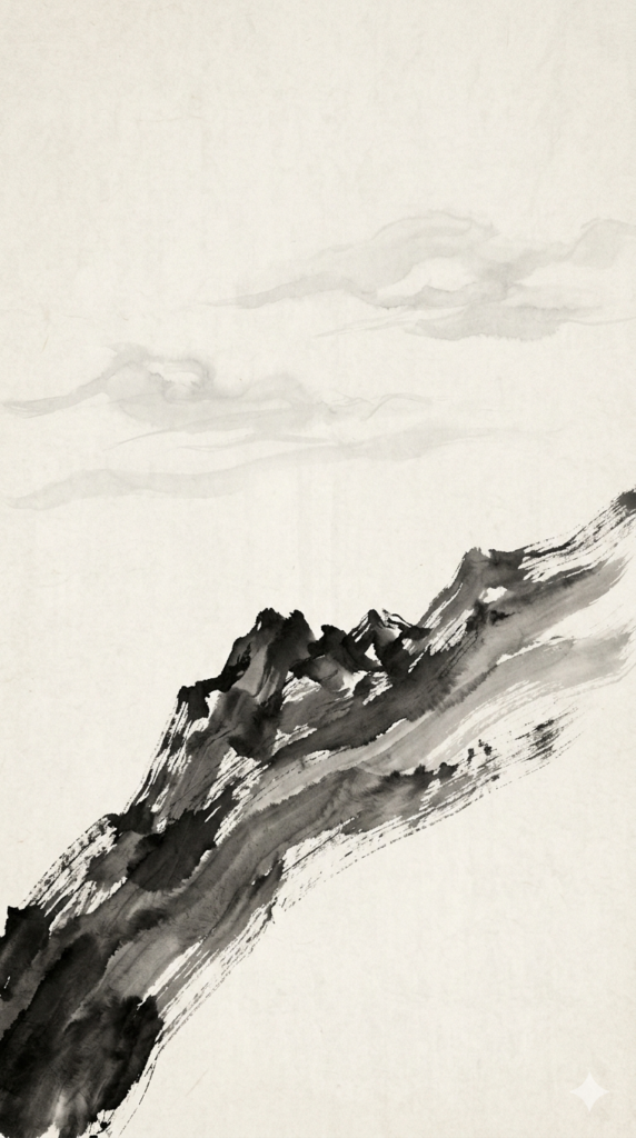 한국화에서 **여백(餘白)**은 단순히 비어있는 곳이 아니라 기(氣)가 흐르는 공간입니다. 이 카드의 윗부분, 산봉우리와 하늘이 만나는 넉넉한 여백에 여러분의 마음을 담아보세요.